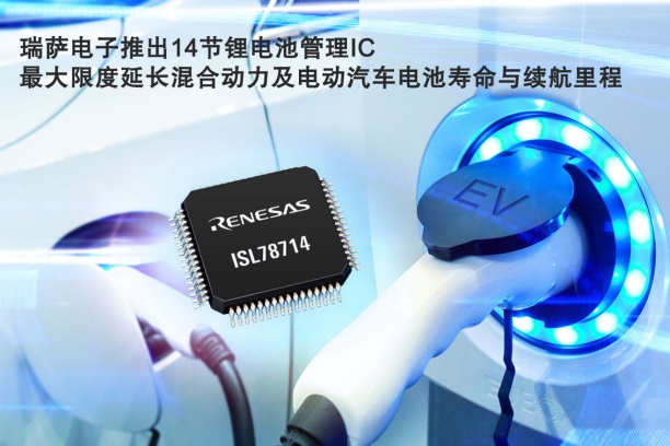2019 年 8 月 8 日,日本東京訊 - 全球領先的半導體解決方案供應商瑞薩電子株式會社(TSE:6723)今日宣布推出第四代鋰離子(Li-ion)電池管理IC,提供高精度及使用壽命。ISL78714提供精準的電池電壓與溫度測量、電池均衡及廣泛的系統(tǒng)診斷,以保護14節(jié)鋰電池組,最大限度提升混合動力和電動汽車(HEV/MHEV/PHEV/BEV)的電池壽命和續(xù)航里程。