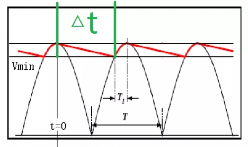 我們一般按照在最低輸入電壓下,最大輸出的情況下,要求電解電容上的紋波電壓低于多少個(gè)百分點(diǎn)來計(jì)算。當(dāng)然,如果有保持時(shí)間的要求,那么需要按照保持時(shí)間的要求重新計(jì)算,二者之中,取大的值。