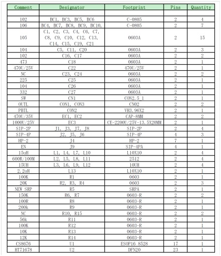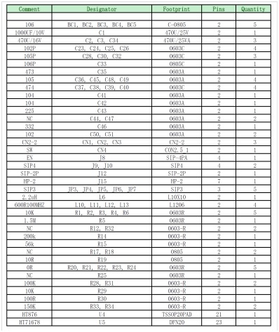 5. HT71678+CS8676 DEMO板物料清單