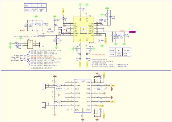 HT71678輸入電壓從2.7V到13V,輸出電壓范圍從4.5V到13V,通過外圍設(shè)置工作于多種動(dòng)態(tài)升壓模式。針對3.7V單節(jié)鋰電選擇5V、7V、9V動(dòng)態(tài)升壓工作模式。HT876工作電壓從2.5V-9.8V,適合做2x10W輸出;針對7.4V雙節(jié)鋰電選擇9V、10V、11.3V、12.8V動(dòng)態(tài)升壓工作模式。CS8676工作電壓從5V-18V。適合做2x20W輸出。