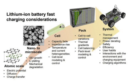 提升充電速度雖然會(huì)帶來充電時(shí)間上的縮短,但是過高的充電速度也會(huì)導(dǎo)致電池的衰降速度加快,影響電動(dòng)汽車的使用壽命。近日,英國帝國理工大學(xué)的Anna Tomaszewska(第一作者,通訊作者)、Xuning Feng(通訊作者)和清華大學(xué)的歐陽明高院士等從材料層面到系統(tǒng)層面全方位的對(duì)鋰離子電池快充的影響因素、衰降機(jī)理和解決方法進(jìn)行了回顧和綜述。