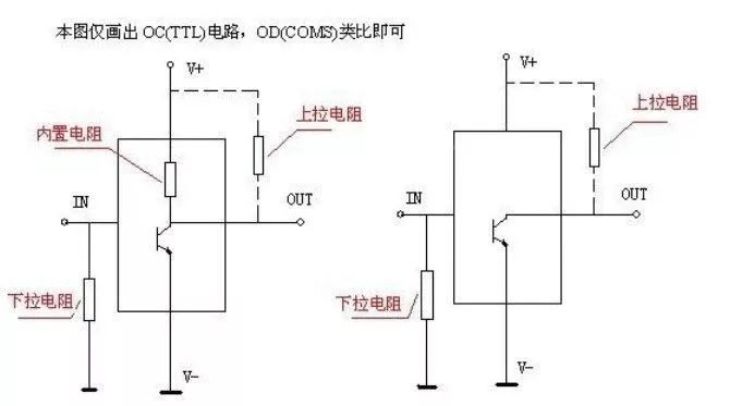 當TTL電路驅動CMOS電路時,如果TTL電路輸出的高電平低于CMOS電路的最低高電平,這時就需要在TTL的輸出端接上拉電阻,以提高輸出高電平的值;OC門電路必須加上拉電阻,以提高輸出的高電平值。