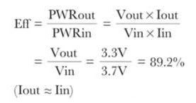 當(dāng)充滿電的鋰離子電池的起始電壓為4.2V時,LDO的初始效率為78%,且其效率隨電池電壓的降低而上升。