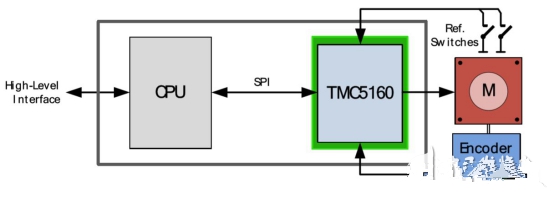 基于驅(qū)動(dòng)芯片TMC5160為基礎(chǔ)的步進(jìn)電機(jī)小型化設(shè)計(jì)圖4:TMC5160基本應(yīng)用框圖(運(yùn)動(dòng)控制器)