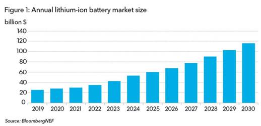 BNEF高級(jí) 儲(chǔ)能 分析師兼報(bào)告作者詹姆斯·弗里斯(James Frith)表示:“根據(jù)我們的預(yù)測(cè),到2030年, 不包括對(duì)供應(yīng)鏈的投資, 電池市場(chǎng)的年價(jià)值將達(dá)到1160億美元。