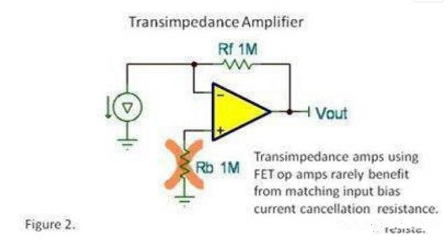 跨阻抗應(yīng)用通常利用高反饋電阻器值來對非常小的電流進(jìn)行放大處理。因此,您可能會忍不住要添加 Rb 來平衡兩個輸入端的電阻。但是,這些應(yīng)用一般使用FET 或者 CMOS 輸入運(yùn)算放大器。由于它們的輸入偏置電流非常低,因此偏移誤差一般也非常小。