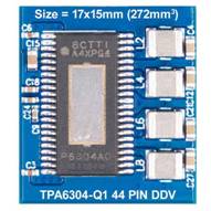 TPA6304-Q1采用TI最新的混合信號制造技術(shù),當(dāng)與3.3-μH電感器一起使用時,整個4通道放大器解決方案(包括所有必需的無源元件)的總尺寸會縮小到272 mm2,如圖2所示。