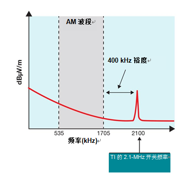 圖5:TPA6304-Q1的高開關(guān)頻率高于AM波段