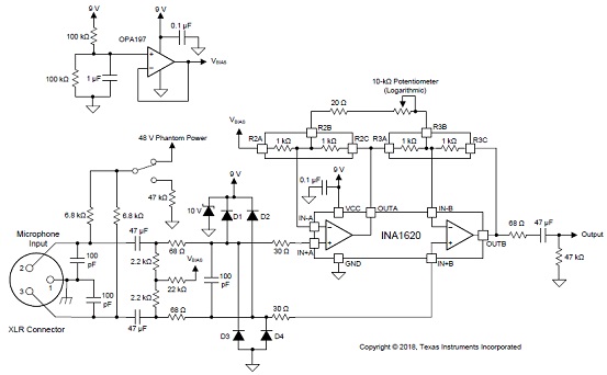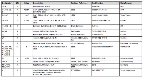 TI公司的INA1620是集成了精密匹配的薄膜電阻對和EMI濾波器的高保真音頻運算放大器,具有低失真高輸出電流兩個音頻運算放大器.放大器的低噪音密度為2.8-nV/√Hz,1 kHz的THD+N為-119.2dB,150mW輸出功率時能驅動32-Ω負載.集成的薄膜電阻匹配度在0.004%內(nèi),可以用來創(chuàng)建大量的非常高性能的音頻電路.INA1620工作電壓±2 V 到 ±18 V,每路電流僅為2.6mA.它的關斷模式使放大器的待機電流小于5 μA.放大器增益帶寬為21MHz(G=+1000),轉換速率為10 V/μs,電容負載驅動能力大于600 pF,600-Ω負載時的開路增益為136dB,器件的工作溫度從–40℃ 到+125℃.主要用在高保真(HiFi)耳機驅動器,專業(yè)音頻設備,模擬和數(shù)字混合控制臺,音頻測試和測量.本文介紹了INA1620主要特性,功能框圖和耳機放大器應用電路,專業(yè)麥克風預放大器電路以及音頻放大器評估模塊INA1620 EVM主要特性,電路圖,材料清單和PCB設計圖.