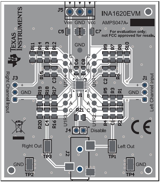 圖4.音頻放大器評估模塊INA1620 EVM外形圖