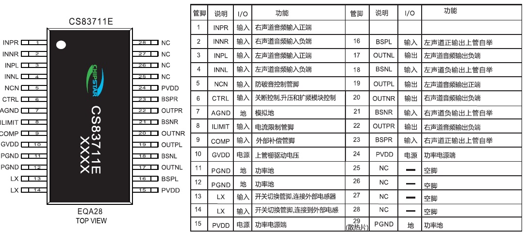 CS83711E是一款兼顧12V適配器供電應(yīng)用針對雙節(jié)鋰電串聯(lián)應(yīng)用,帶兩種防破音模式,擴頻模塊,內(nèi)置BOOST升壓模塊,R類立體聲音頻功率放大器。可以為4Ω 的負載提供最高 2X16.5W的恒定功率 .CS83711E管腳完全兼容CS83785E,為音頻子系統(tǒng)的功放設(shè)計以及終端產(chǎn)品的成本降低更換提供了最大的便利性。
