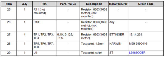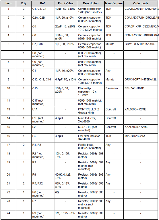 評(píng)估板STEVAL-ISA208V1材料清單: