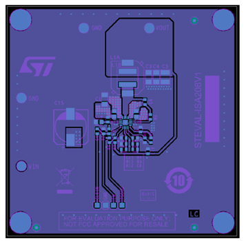 圖6. 評(píng)估板STEVAL-ISA208V1 PCB設(shè)計(jì)圖(底層) |