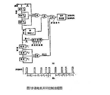(2)以硬件定時 如果加速系統(tǒng)需要執(zhí)行的步數(shù)比較少,那么,相激磁定時可以用數(shù)字集成電路產(chǎn)生。例如,在圖5 (a)小,精確的前三步定時由持續(xù)時間可變的延時時序電路產(chǎn)生,用它把電機加速到由系統(tǒng)鐘頻確定的步進頻率。當接近目標位值時,利用后面的延時時序電路使電機減速。