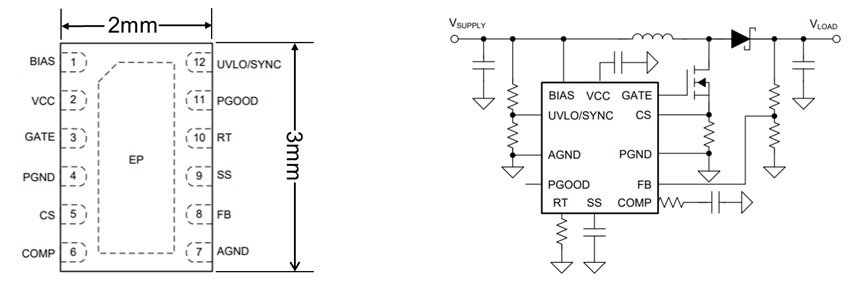圖4. LM5155封裝示意圖 圖5. LM5155升壓應用電路圖