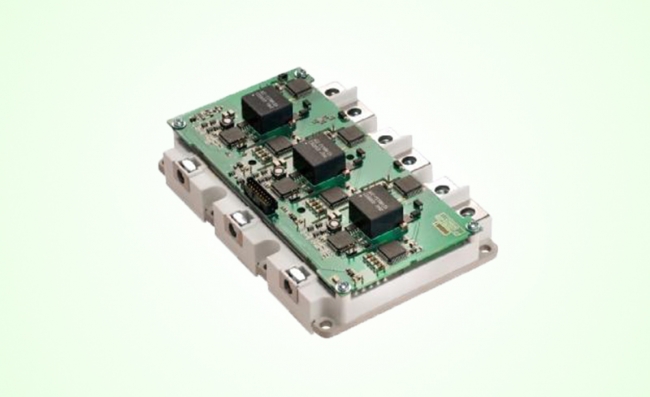該可擴(kuò)展平臺中的第一款產(chǎn)品是一個(gè)三相1200V/450A碳化硅MOSFET智能功率模塊,它具有低導(dǎo)通損耗特性,導(dǎo)通電阻為3.25毫歐(mOhm),同時(shí)具有低開關(guān)損耗特性,在600V/300A時(shí)導(dǎo)通和關(guān)斷能量分別為8.3mJ和11.2mJ。相比最先進(jìn)的IGBT功率模塊,其將損耗降低了至少三倍。新模塊通過一個(gè)輕質(zhì)的鋁碳化硅(AlSiC)針翅底板進(jìn)行水冷,結(jié)到流體的熱阻為0.15°C / W。該智能功率模塊可承受高達(dá)3600V的隔離電壓(經(jīng)過50Hz、1分鐘的耐壓測試)。
