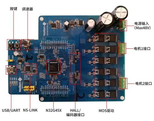 基于N32G455系列芯片的電機(jī)控制開發(fā)套件,提供完整的電機(jī)控制算法庫,支持包括MRAS在內(nèi)的多種無感算法、基于正交編碼的位置環(huán)控制,支持單電阻、雙電阻電流采樣控制,支持BLDC、FOC混合應(yīng)用,支持完全獨(dú)立的雙電機(jī)、四電機(jī)應(yīng)用,支持全參數(shù)的數(shù)據(jù)觀測(cè)和參數(shù)配置,支持代碼自動(dòng)生成的開發(fā)流程。