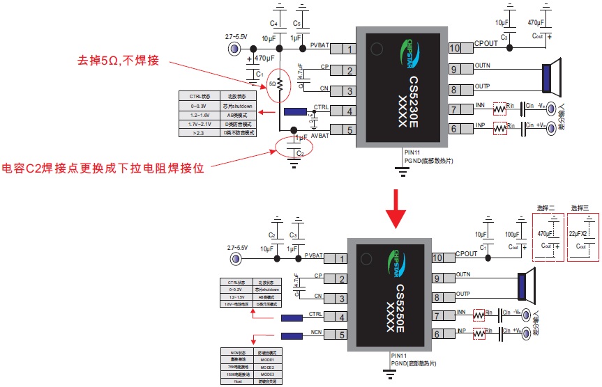 2018年底CS5230一經(jīng)推出,因其清澈的音質(zhì)、澎湃的功率、極簡的封裝、極少的外圍、極高的性價(jià)比,立刻成為藍(lán)牙小音箱首選的音頻功放,廣受歡迎。為滿足消費(fèi)者對于更大功率更好音質(zhì)的需求,深圳市永阜康科技有限公司現(xiàn)在大力推廣性能升級版本CS5250,其在CS5230的基礎(chǔ)上,功率由4.8W提升至5.3W、防破音模式1種增加為3種從而適配各式喇叭箱體,進(jìn)一步推動內(nèi)置升壓音頻功放的普及應(yīng)用。