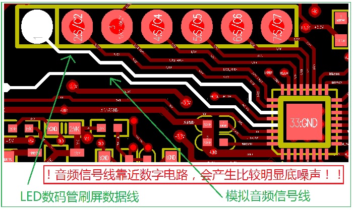 (2). 音頻信號(hào)走線盡量遠(yuǎn)離數(shù)字電路。