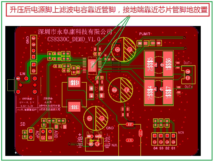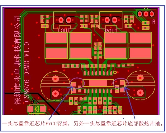 (1). 音頻功放芯片盡量靠近主控解碼芯片,音頻信號(hào)走線盡量短。