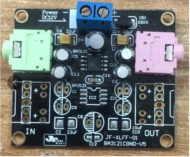 最后,經(jīng)過電路板打樣和焊接測(cè)試,該方案確實(shí)能夠解決音頻環(huán)地帶來“!.”的噪聲,其和使用信號(hào)隔離器的效果是一樣的。