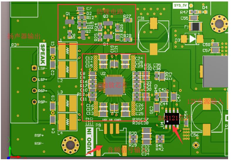 從絲印上來看,其電源采用了10W的12V轉(zhuǎn)12V隔離電源,音頻采用的是PAM8006方案,15Wx2雙聲道8歐姆揚(yáng)聲器的D類數(shù)字功放。