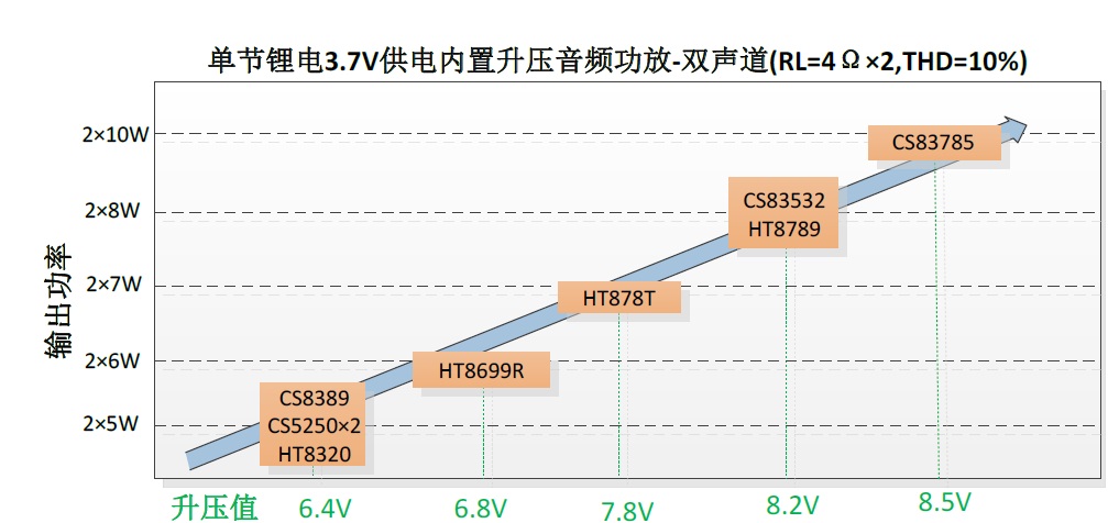 內(nèi)置BOOST升壓的2×5.5W立體聲音頻功率放大器 |