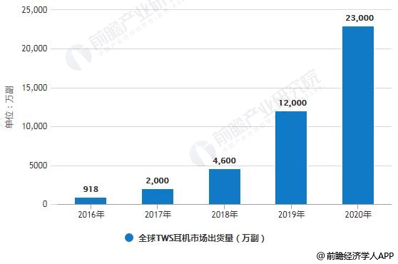 圖1:2016-2020年全球TWS耳機(jī)市場(chǎng)出貨量統(tǒng)計(jì)情況及預(yù)測(cè)。數(shù)據(jù)來源:前瞻產(chǎn)業(yè)研究院