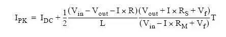 其中,Rs為感應電阻阻抗加電感繞線電阻的阻。Vf 是肖特基二極管的正向壓降。R是Rs加MOSFET導通電阻,R=Rs+Rm。