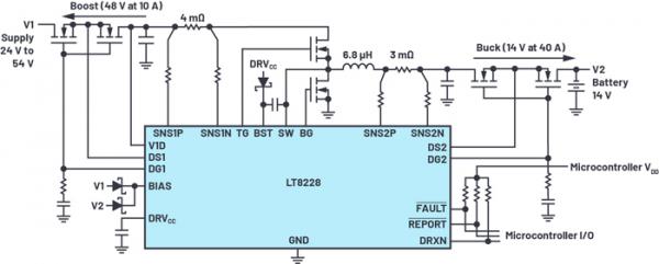 ADI的PbL產(chǎn)品部門最近推出了一款雙向DC-DC控制器LT8228,它采用與降壓轉(zhuǎn)換相同的外部功率組件進(jìn)行升壓轉(zhuǎn)換。