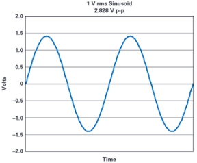 圖1所示為1 V rms正弦曲線圖。峰峰值為1 V rms × 2 √2 = 2.828 V,擺幅為+1.414 V至–1.414 V。2