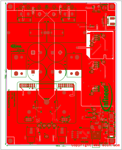 圖10. 評估板EVAL_AUDAMP24 PCB設計圖:主板正面