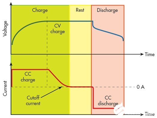 圖1:鋰離子電池的典型充放電循環(huán)。