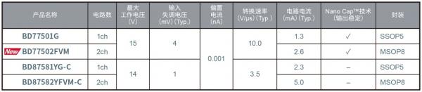 ROHM已經(jīng)在抗干擾性能出色的EMARMOUR™系列中,推出了采用自有電源技術(shù)“Nano Cap™”,且不會(huì)因負(fù)載容量影響而發(fā)生振蕩的單通道高速CMOS運(yùn)算放大器“BD77501G”。該產(chǎn)品收到了眾多領(lǐng)域和地區(qū)包括客戶和其他領(lǐng)域技術(shù)人員在內(nèi)的廣泛反響,因此,為滿足市場(chǎng)需求,此次又推出了雙通道的新產(chǎn)品。