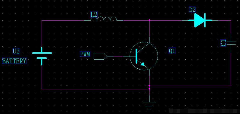 降壓模式——Bust mode,這個大家比較熟悉的,用的也比較多,比如5V-》3.3V穩(wěn)壓,對應的芯片很多大家上網(wǎng)搜一下就有了,有LDO模式和DC-DC模式的。其中LDO模式的芯片外圍電路較簡單,只需在輸入和輸出端加上濾波電容即可。而DC-DC模式的芯片電路相對較復雜一點,但是效率較高。一般需要外接電容和電感,通過閉合開關對電感進行充電,斷開開關之后,電感作為一個電源進行放電,可以通過PWM的占空比來調(diào)節(jié)輸出電壓值,電壓值最大不會超過電源電壓。對于DC-DC降壓模式的基本電路如下圖所示: