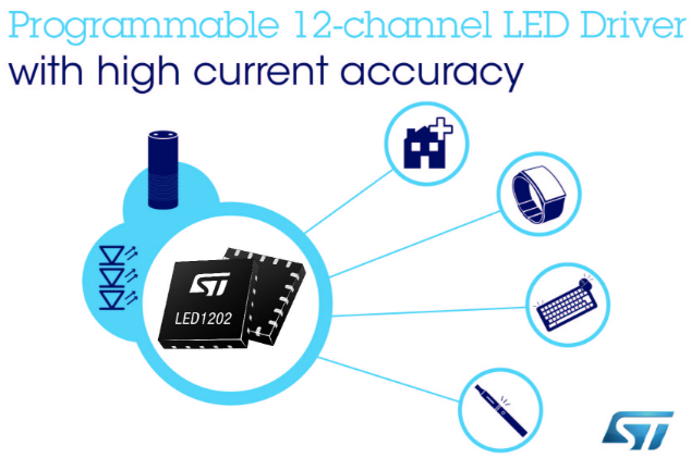 2019年4月10日,意法半導體 12通道LED驅(qū)動器LED1202采用專利技術(shù),可防止在“流水燈”或“跑馬燈”LED動畫特效中出現(xiàn)分散注意力的閃光現(xiàn)象,使智能家居設(shè)備、穿戴設(shè)備和小家電的人機交互更流暢、更自然。