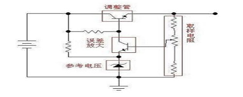 讓我們繼續(xù):如果我們用一個三極管或者場效應(yīng)管,來代替圖中的可變阻器,并通過檢測輸出電壓的大小,來控制這個“變阻器”阻值的大小,使輸出電壓保持恒定,這樣我們就實(shí)現(xiàn)了穩(wěn)壓的目的。這個三極管或者場效應(yīng)管是用來調(diào)整電壓輸出大小的,所以叫做調(diào)整管。