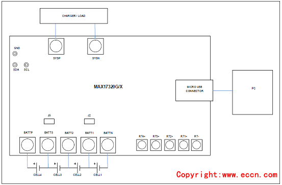 圖5.評估板MAX17320 EVK連接圖