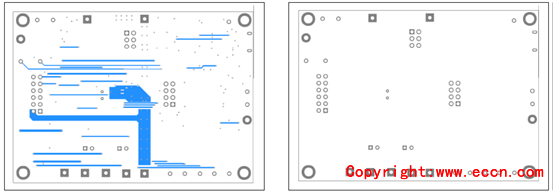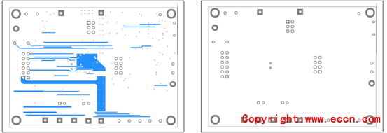 圖15.評估板MAX17320G EVK PCB設(shè)計(jì)圖(2):左:層2;右:層3