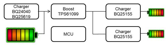 4. 圖五所示為2個(gè)耳機(jī)端電量有差異的時(shí)候,2顆TPS63810可以分別給不同電量的耳機(jī)電池充電,從而保證任何情況下都可以做到充電電壓跟電池電壓都是最小壓差,從而提高充電效率。