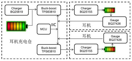b. 充電倉(cāng)端采用2顆TPS63810分別給2個(gè)耳機(jī)端供電。