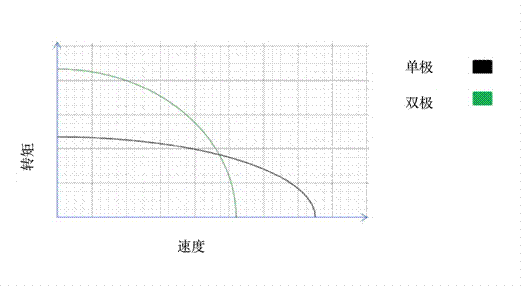 圖5:單極與雙極串聯(lián)步進(jìn)電機轉(zhuǎn)矩/速度曲線