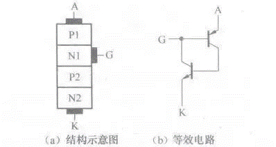 下圖所示是普通晶閘管結(jié)構(gòu)示意圖和等效電路。