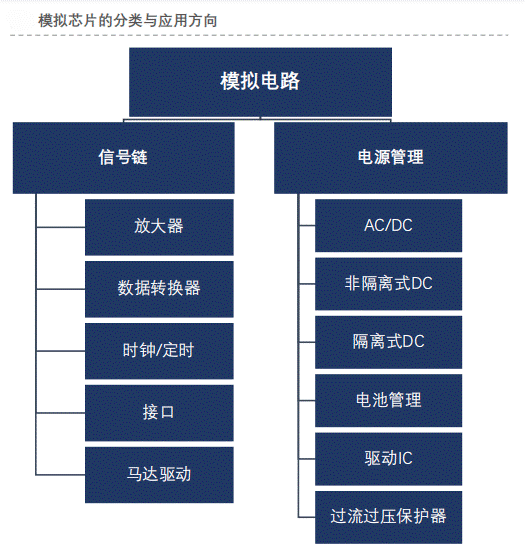 1.模擬芯片:放大器、數(shù)據(jù)轉(zhuǎn)換、比較器、電源管理、數(shù)據(jù)轉(zhuǎn)換芯片等產(chǎn)品進(jìn)行應(yīng)用。模擬類產(chǎn)品不同,產(chǎn)品功能多樣且考核指標(biāo)繁多,沒有嚴(yán)格意義上性能優(yōu)越的模擬芯片。