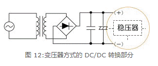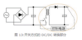圖12和13是各AC/DC轉(zhuǎn)換方式的電路,但圈起來的部分是將DC電壓,轉(zhuǎn)換成想要的DC電壓的電路。在實(shí)際使用上,如果未利用該電路,轉(zhuǎn)換成穩(wěn)定且高精度的DC電壓,就無法產(chǎn)生電子電路所需要的電源。