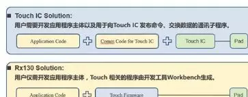 特別是批量生產時,增加了燒錄觸控 IC的額外成本。而右圖所示的Rx130方案中,僅需要將應用程序燒錄到Rx130中。