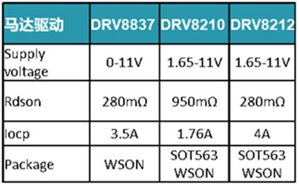 DRV8210是TI去年新出的馬達驅(qū)動,WSON封裝跟經(jīng)典的DRV8837管腳兼容,另外還單獨做了SOT563小封裝,最大支持1.76A的電流,這顆馬達驅(qū)動也是外圍非常簡單,只需要配置幾顆濾波電容就可以了。另外如果電流不夠可以選擇管腳兼容的DRV8212支持4A的電流。