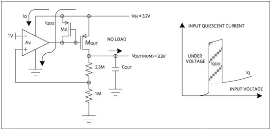 圖2. 最低壓差條件下,MG驅(qū)動(dòng)阻抗造成靜態(tài)電流增大。
