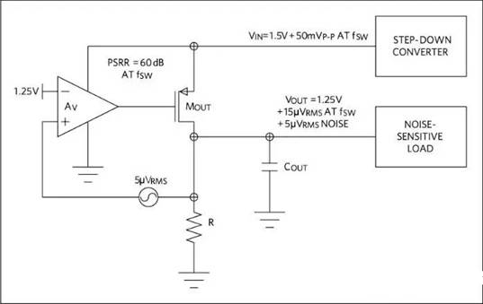 顯而易見,大多數(shù)設(shè)計(jì)用于低噪聲輸出的穩(wěn)壓器也具有優(yōu)異的PSRR。無(wú)論何種原因,負(fù)載對(duì)電源紋波都非常敏感。