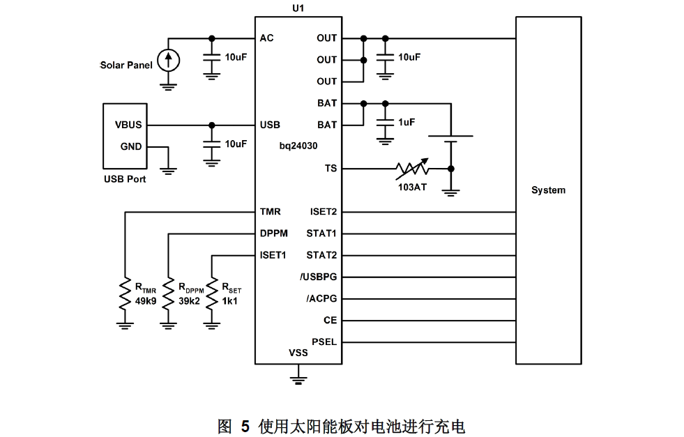 bqTINY-III還允許通過(guò)USB端口對(duì)電池進(jìn)行充電。在這種情況下,Q3就會(huì)被用來(lái)調(diào)節(jié)輸入電流,以確保USB規(guī)范可根據(jù)IC的ISET2引腳狀態(tài)滿(mǎn)足100mA或500mA的要求。如果系統(tǒng)和充電電流的總和超過(guò)了所選USB的電流極限,則VOUT就會(huì)下降且DPPM功能會(huì)降低充電電流,或像從前那樣還原為電池補(bǔ)充模式。bqTINY-III系列器件的另一個(gè)非常有用的特性就是如果充電器正處于DPPM狀態(tài),則其內(nèi)部安全定時(shí)器就會(huì)自動(dòng)延長(zhǎng)時(shí)間。因此在低光照或電流限制的條件下,當(dāng)電池充電速度較慢時(shí),在出現(xiàn)錯(cuò)誤條件之前對(duì)電池進(jìn)行再充電所允許的時(shí)長(zhǎng)得到了適當(dāng)?shù)难娱L(zhǎng),從而避免了過(guò)早的充電終止。 |